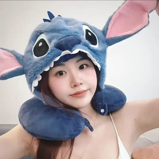 Almohada Viajera Stitch con capucha.